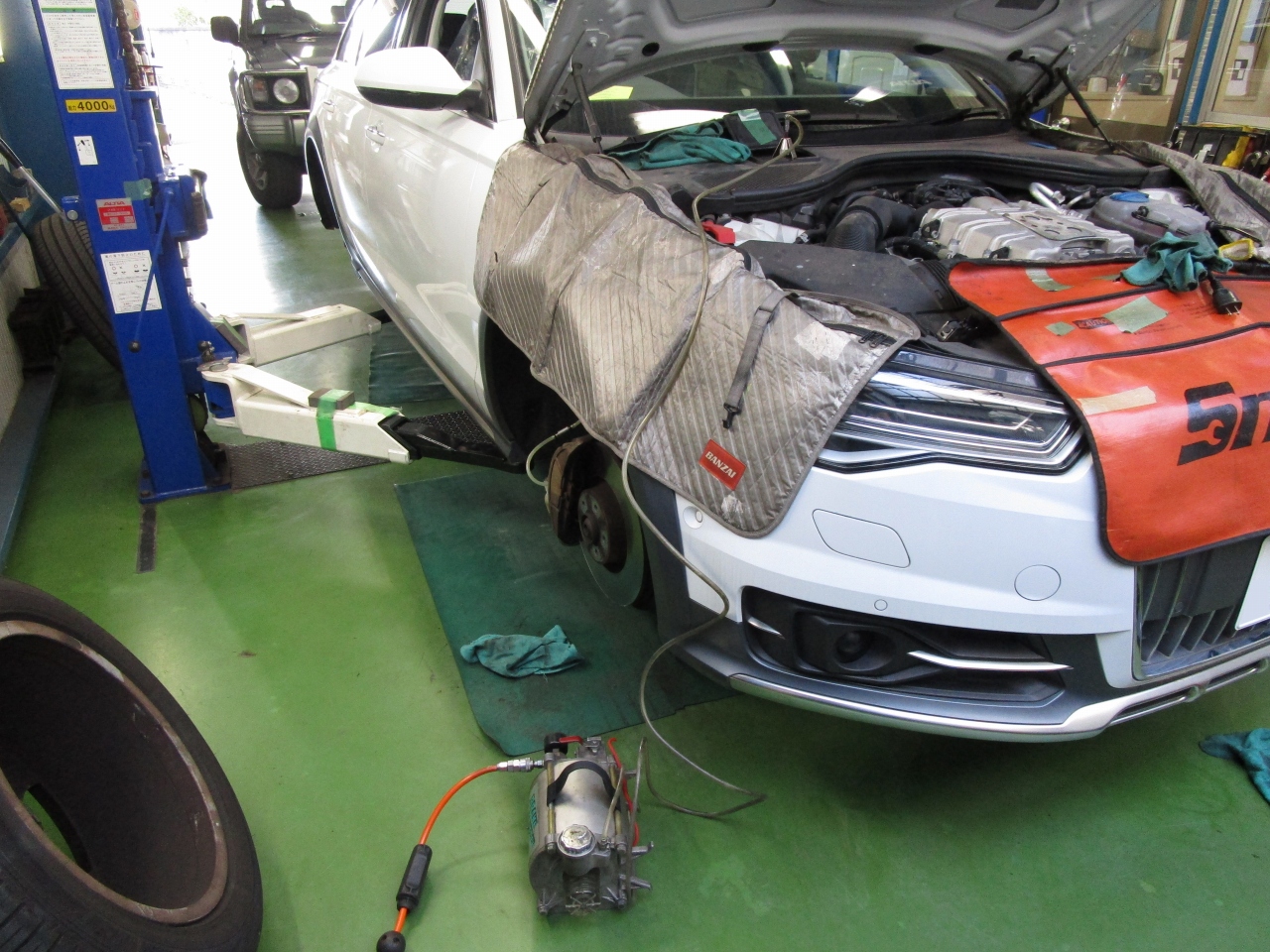 AUDI A6、車検整備のご依頼にてご入庫頂きました。整備のご依頼誠に有難うございます。