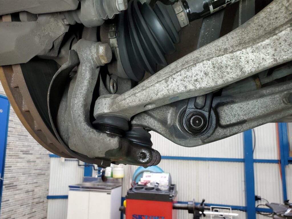 早速整備に取り掛かります。まずは法定24か月点検から実施していきます。今回の整備ではアッパーアームのブッシュが切れていましたので交換が必要になります。