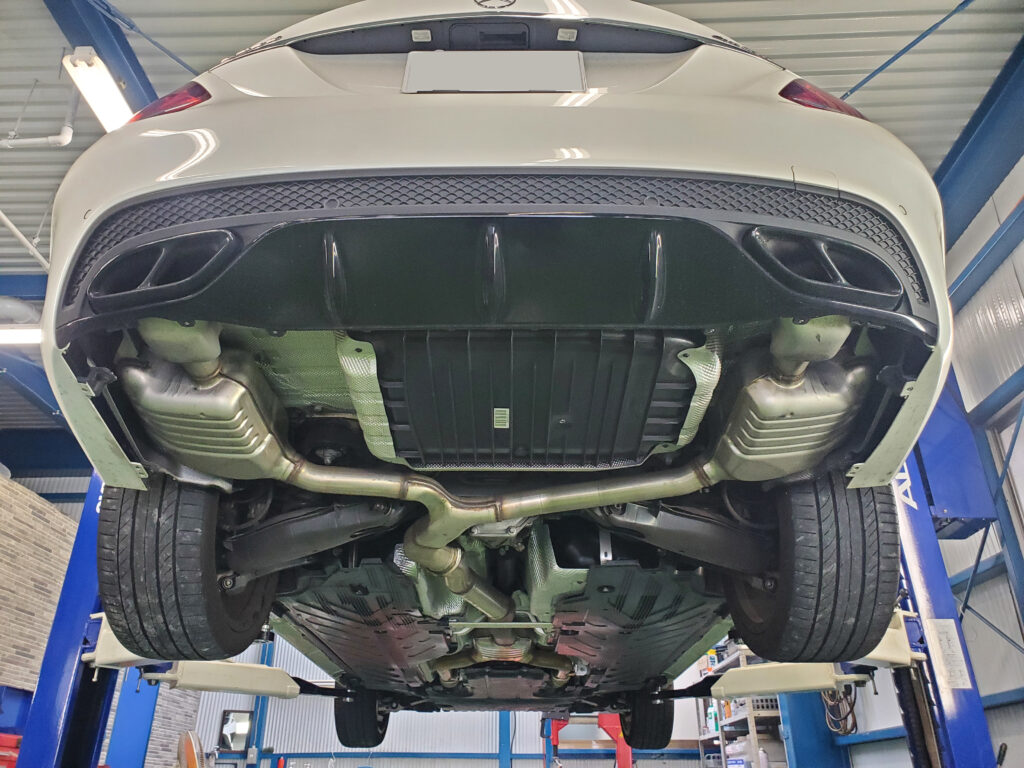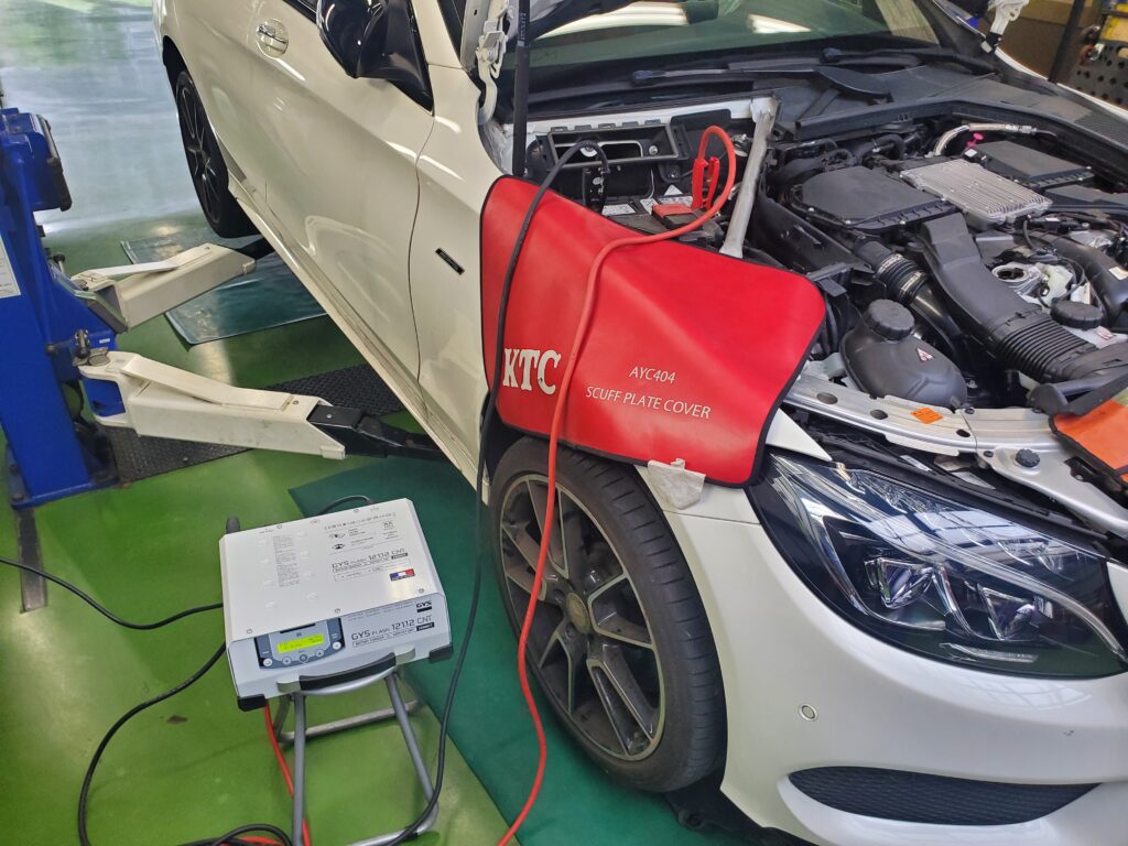 ベンツC450、車検整備のご依頼にてご入庫頂きました。車検のご依頼を頂き誠に有難うございます。