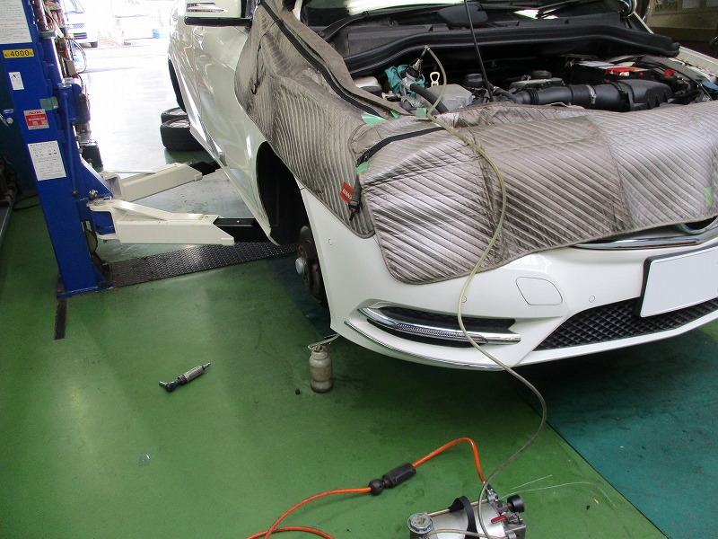 ベンツB180、車検整備のご依頼にてご入庫頂きました。地元のお客様のお車になります。