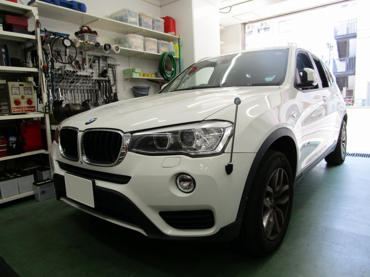 BMW X3、ドライブレコーダー取付のご依頼にてご入庫頂きました。作業のご依頼を頂き有難うございます。