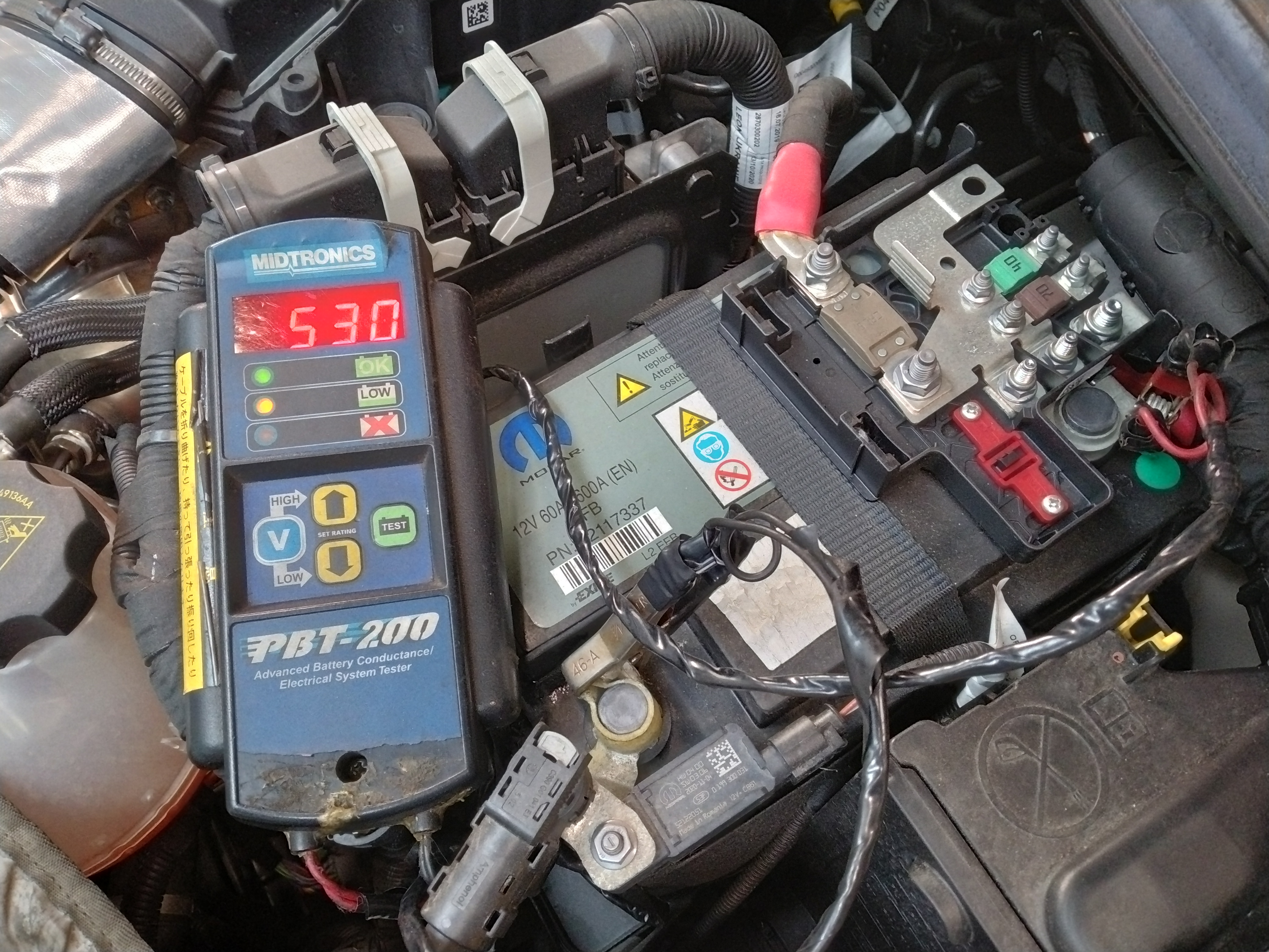 走行距離が少なく利用頻度の低い車両ではバッテリーの性能が低下する傾向があります。電圧並びにCCA値が低下しておりますので、このバッテリーは充電が必要になります。