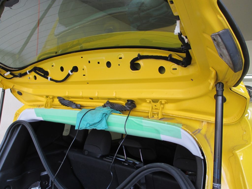 ジープレネゲートご入庫頂きました。ドライブレコーダーのお取付けになります。早速作業に取り掛かります。