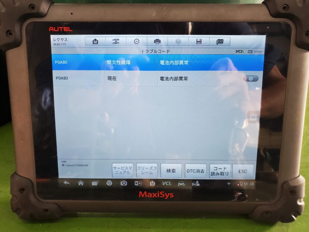 AUTELで診断したところ、ハイブリッドバッテリーの不良が原因でした。
