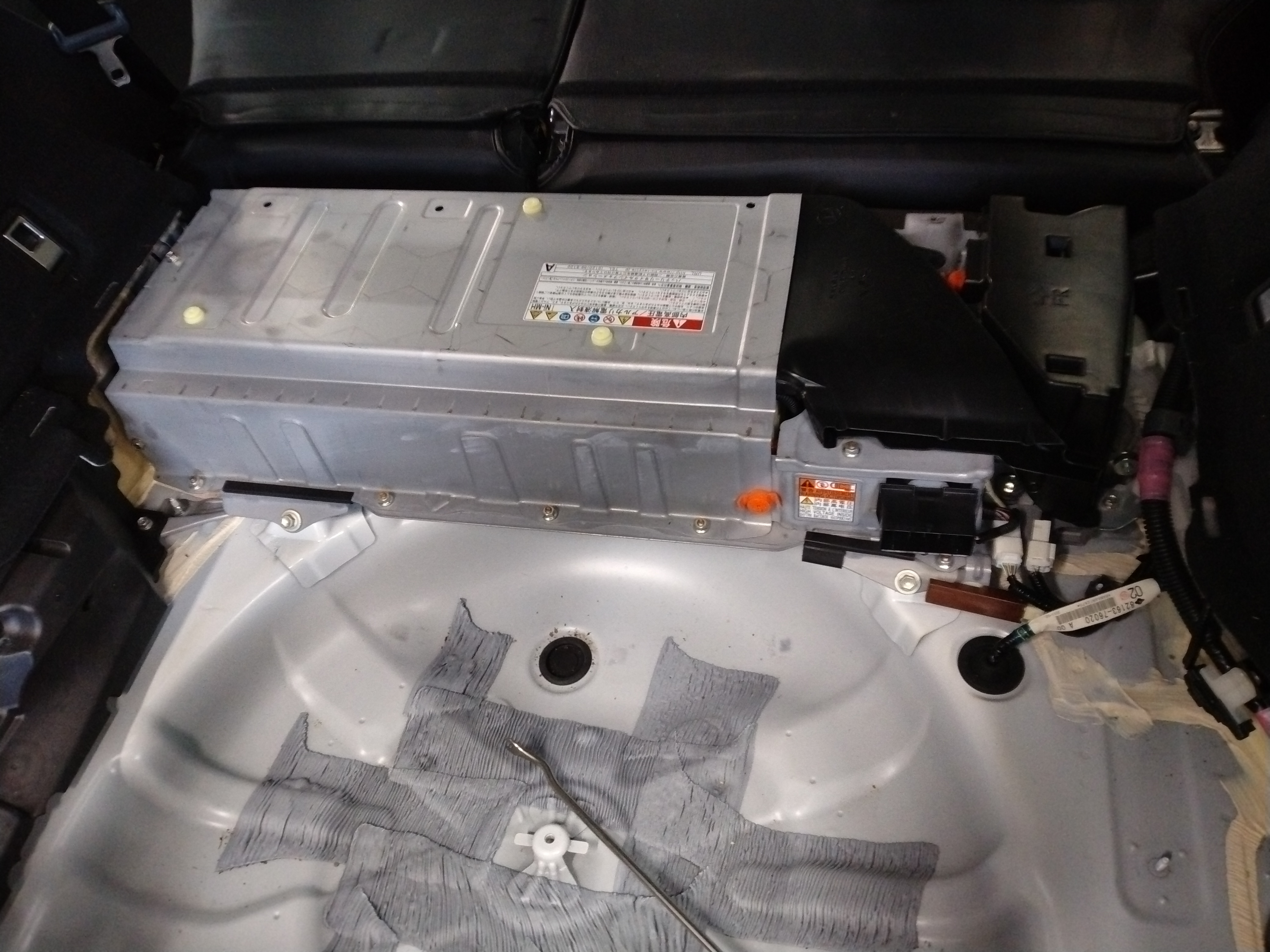 ハイブリッドバッテリーはリヤシートの裏側に設置されています。