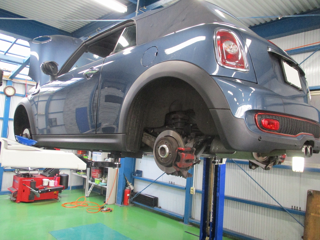 MINIクーパーご入庫頂きました。いつもお世話になっているお客様のお車で今回は車検整備のご依頼にてご来店頂いております。早速点検整備に取り掛かります。