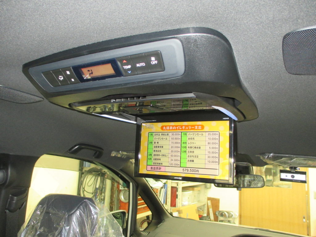ALPINEリヤビジョンモニターの取付ですがルーフの加工等もありかなり気を使います。ALPINEの場合、それぞれの車種にに合わせたベースを使用するので見栄えもディーラーオプション同等又はそれ以上になります。