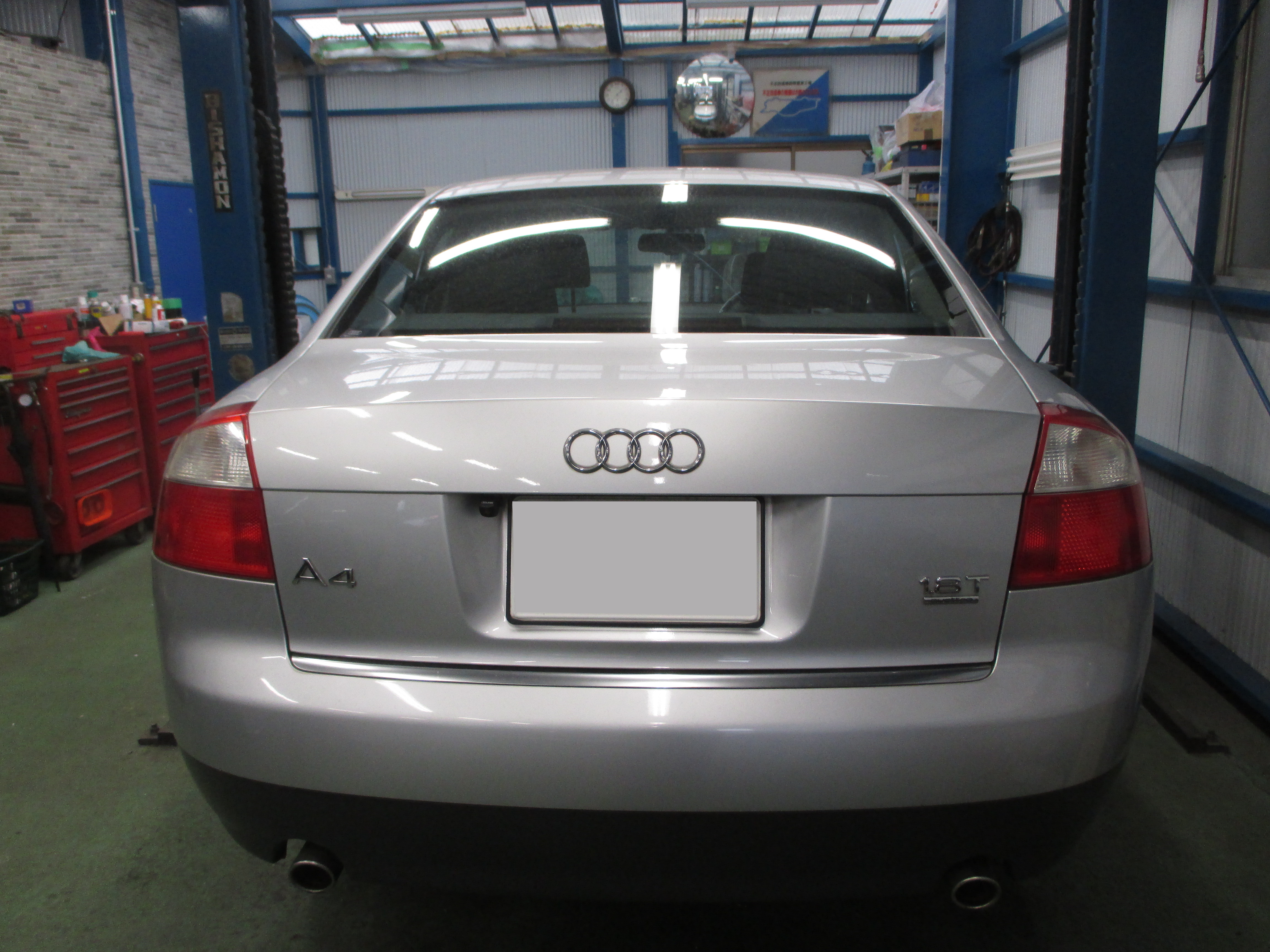 アウディA4車検整備のご依頼にてご入庫頂きました。チェックランプ点灯した状態でのご入庫になります。