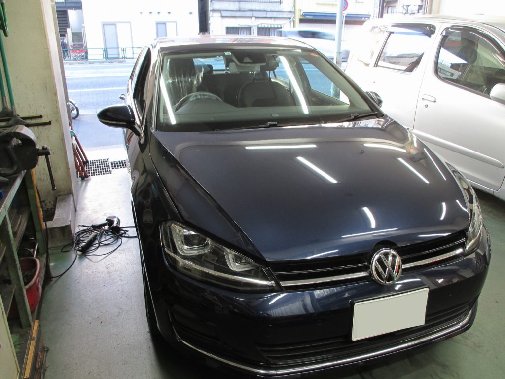 ワーゲンゴルフご入庫頂きました。いつもよくご利用頂いているお客様のお車で、今回はドアミラーの交換にてご入庫頂きました。